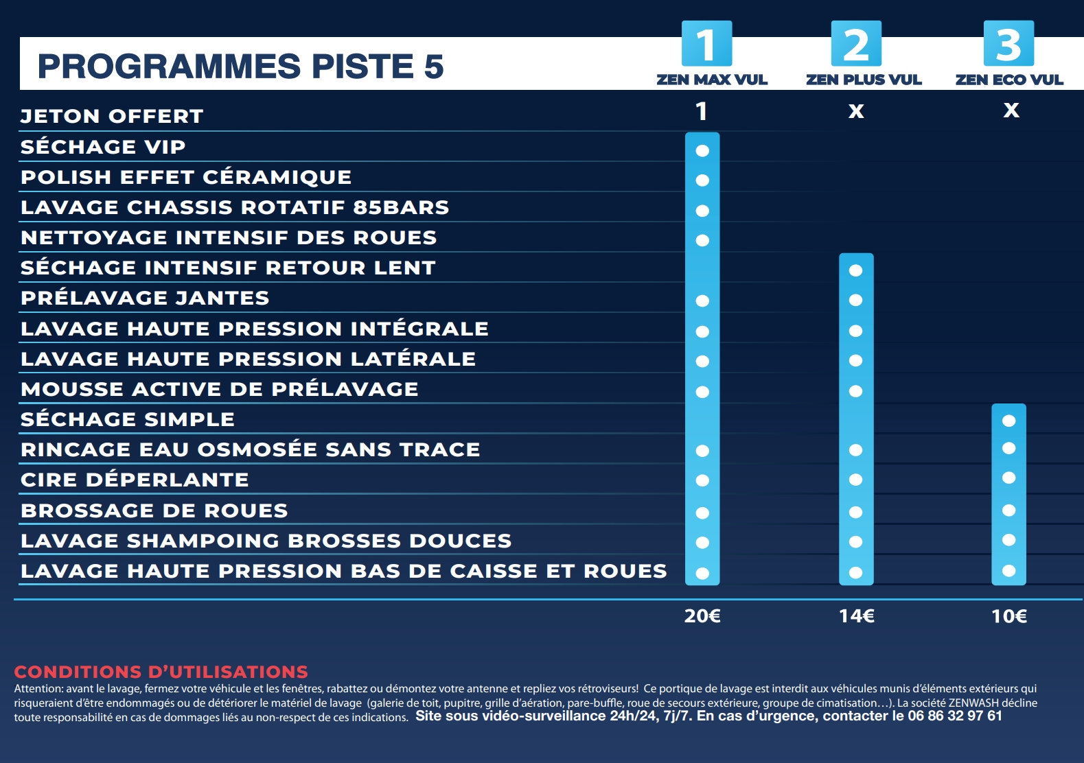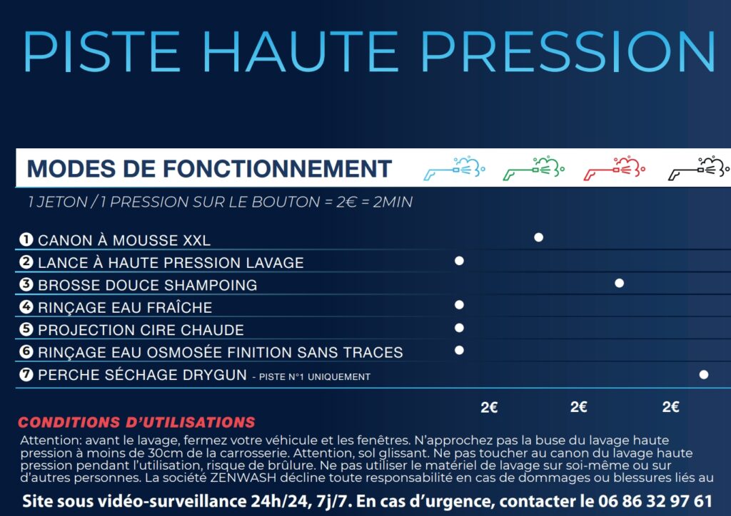 3 pistes de lavage haute pression (hauteur max. de 3.20m et 3.50m sur piste 3)