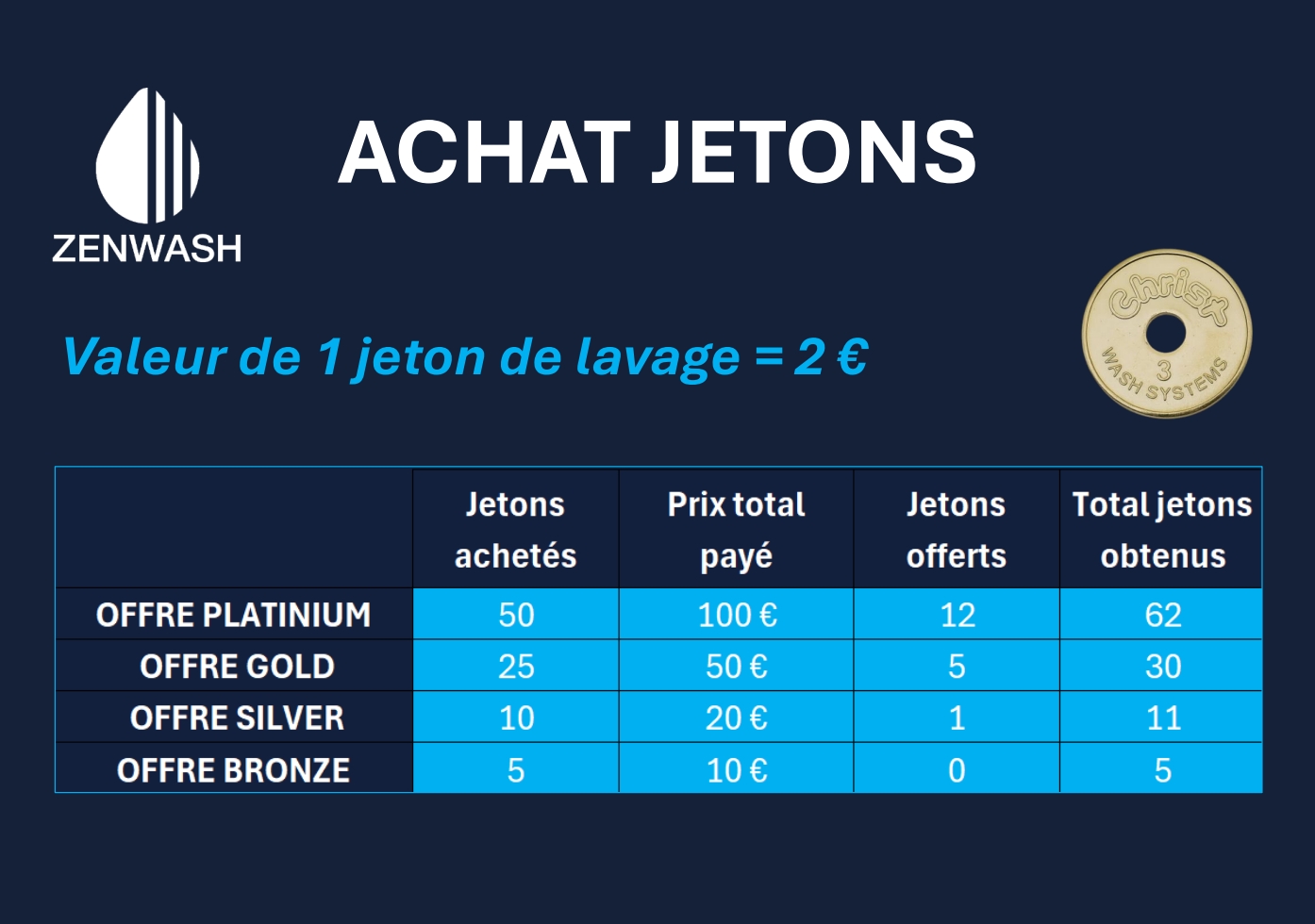 Offre spéciale: du 01/08/2025 au 31/12/2025, 1 jeton offert pour chaque lavage effectué aux portiques à brosse